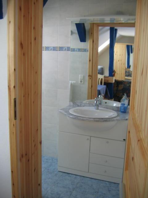 Die Dusche befindet sich im Erdgeschoss und das WC mit Waschgelegenheit im Obergeschoss.